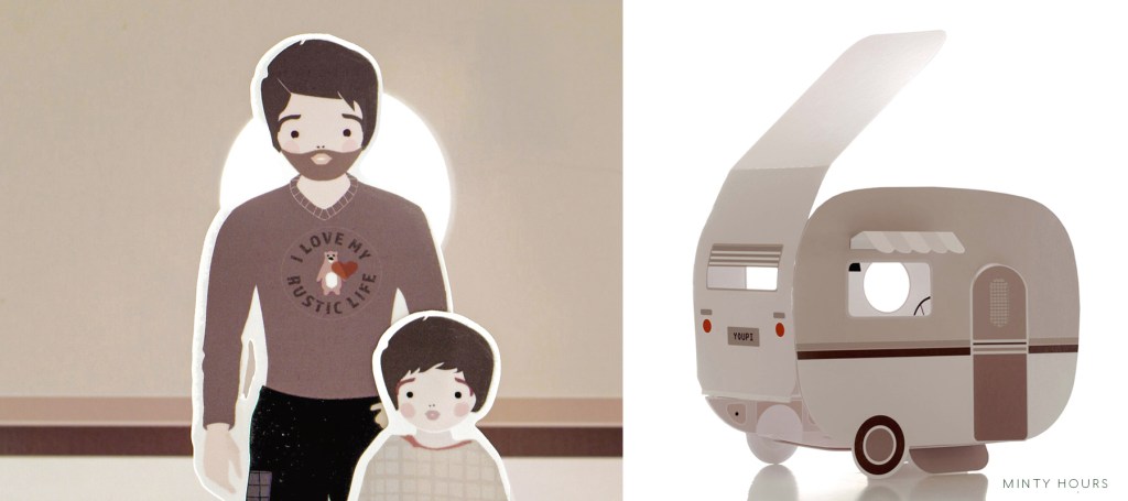 Voici donc le cadeau que je prépare pour toi depuis le début de l’été. J’espère que tu auras autant de plaisir à colorier et monter ce joli camping familial, que j’ai eu plaisir à l’imaginer. Cette petite famille t’attend pour prendre vie sous tes crayons de couleur, tes feutres, tes belles idées créatives.
