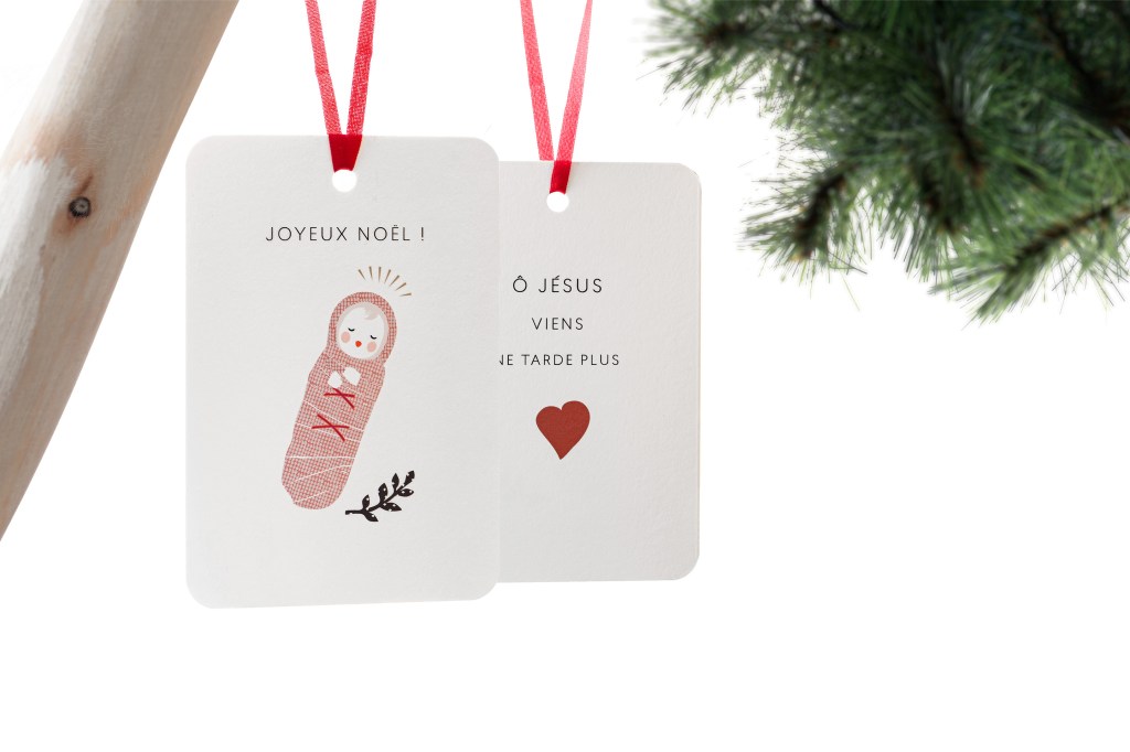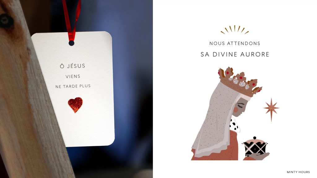 Vous l’avez peut-être repérée en boutique cette petite carte à suspendre. Elle est livrée avec son ruban de soie pour en faire une jolie suspension – et en option avec son petit nécessaire à pailleter qui réjouit les enfants. Sur une face, un désir d’espérance pour le Temps de l’Avent, de l’autre, un tendre petit Jésus pour le Temps de Noël. Le beau visuel du Roi mage est disponible en carte double ou simple, sur papier d’exception, ainsi que l’Ange, le Berger, la Vierge, Saint Joseph, l’Enfant Jésus couché sur la paille, la Vierge à l’Enfant. La collection complète est à retrouver en cliquant ici, vers le shop