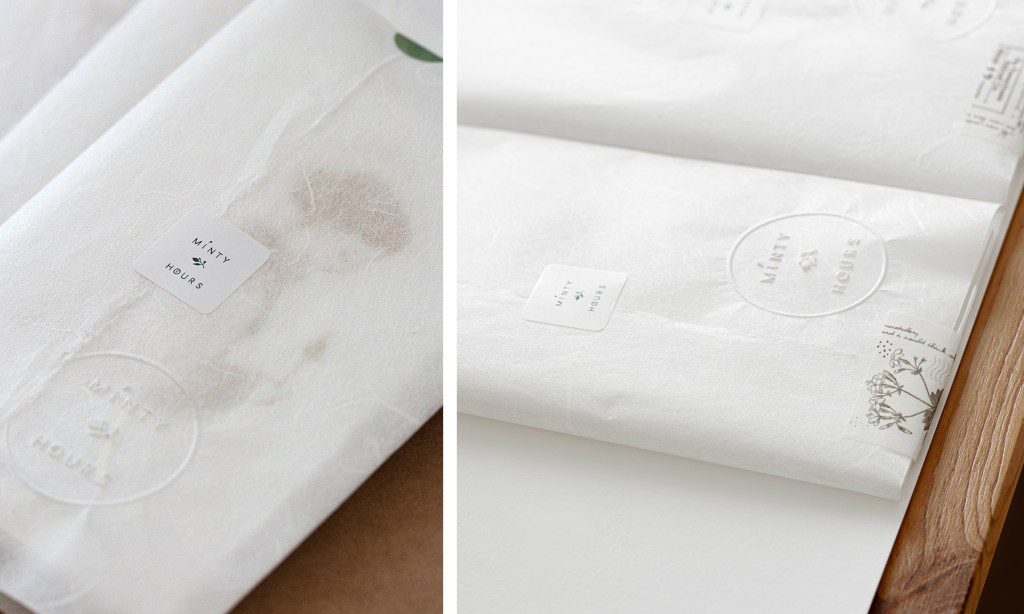 Chez Minty Hours, nous sommes très attachés aux gestes, aux outils et pratiques de l’artisanat d’art : contact avec la matière, découpe au massicot, impression manuelle, utilisation d’encres surfines et de papiers fabriqués selon des procédés très anciens.