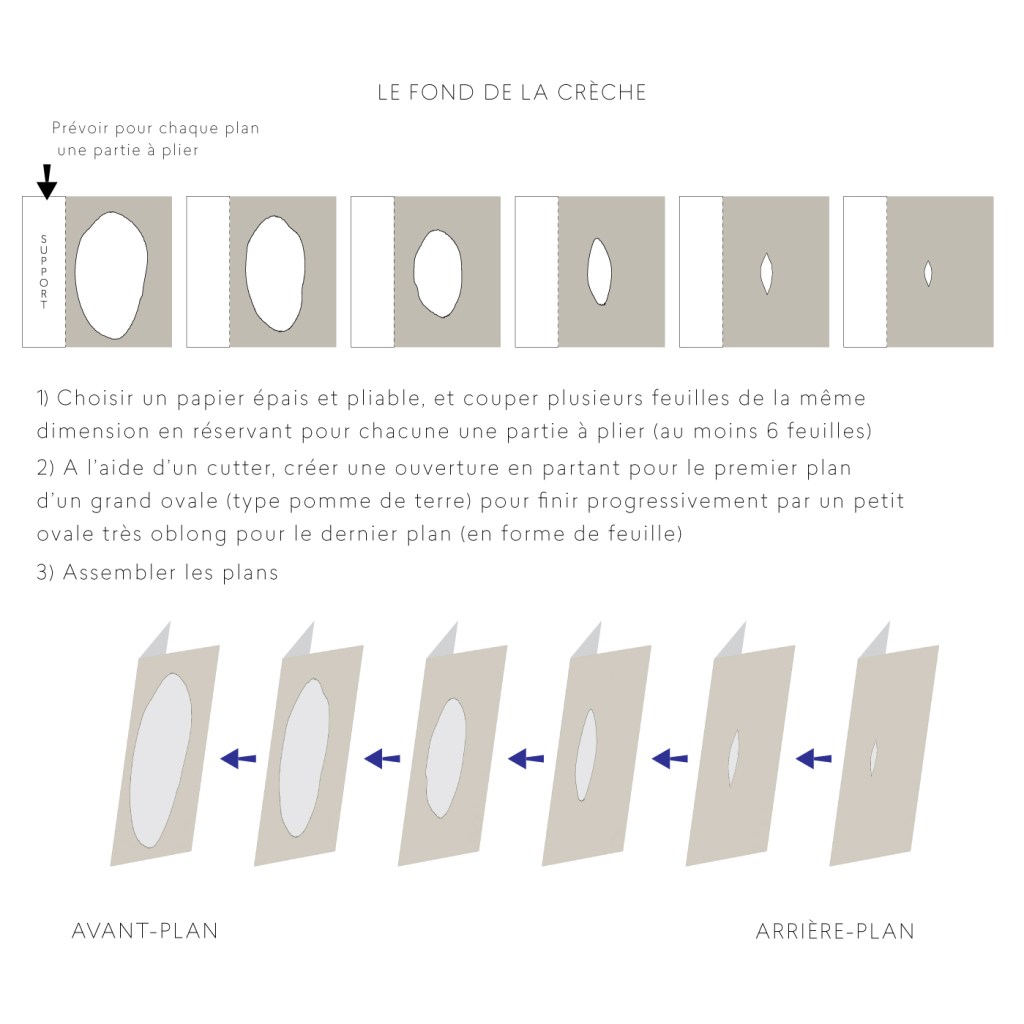 Il est conseillé de placer une petite guirlande lumineuse au dos de ce fond de crèche. Sa lumière se diffusera joliment à travers la fine ouverture du dernier plan